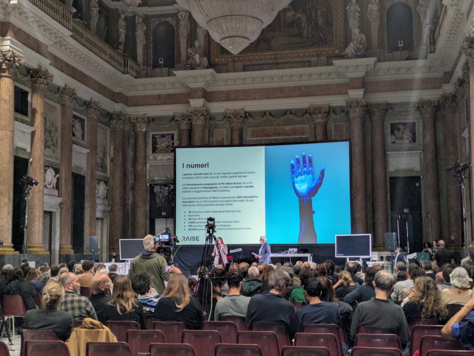 Il percorso di RAISE al Festival si è aperto nella Sala delle Donne di Palazzo Ducale con la conferenza “L’Ecosistema RAISE e le Visioni di Domani – Tecnologie emergenti e conoscenza condivisa per migliorare il presente e immaginare il futuro”, che ha riunito 90 partecipanti tra pubblico e addetti ai lavori.