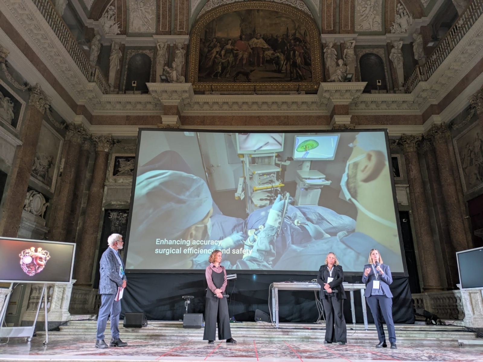 Tra queste, il sistema FitFES sviluppato da FDG (Spoke 2) ha illustrato come la stimolazione elettrica possa supportare il recupero motorio, mentre il robot collaborativo R1 di IIT HSP (Spoke 2) ha dimostrato capacità di interazione con persone e oggetti, riconoscendo gesti e movimenti. Il ROSSINI Project (INFN, Spoke 4) ha portato in scena un robot progettato per ispezioni remote in contesti di sicurezza nucleare, e il sistema di 3D Markerless MR/CT and US Image Registration di ESAOTE (Spoke 2) ha mostrato l’integrazione tra imaging medico e intelligenza artificiale per una diagnostica avanzata e più precisa.